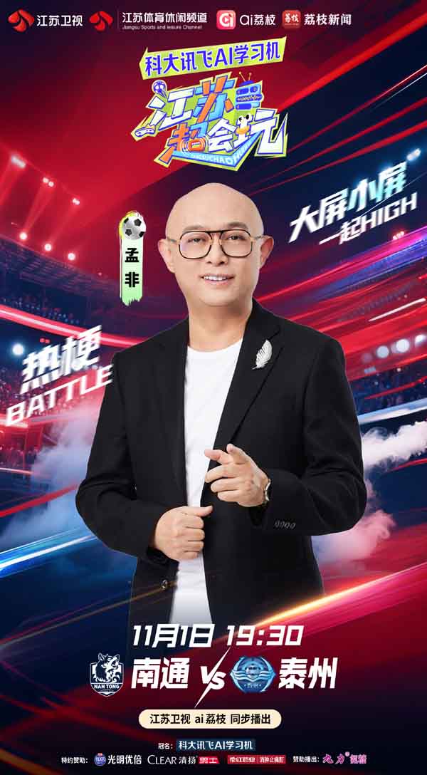 今晚,全世界的目光将汇聚到南京奥体中心体育场!经过175天、84场比赛的激烈较量,“苏超”总冠军将在南通队和泰州队之间产生。《江苏超会玩》将于今晚19:30,对“苏超”总决赛进行现场直播。届时,江苏卫视主持人李响将搭档主持人孟非、著名解说员黄健翔坐镇直播间,与大家共同见证冠军的荣耀加冕。